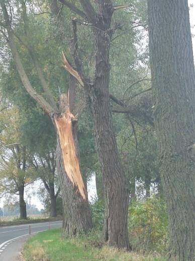 Hoge bomen vangen veel wind. Als ze samen staan, zijn ze sterk. Deze hoge bomen aan de Lauwsestraat staan er alléén voor sinds hun lotgenoten gerooid werden. Drie weken geleden donderde bij een windvlaag alwéér een forse tak naar beneden.