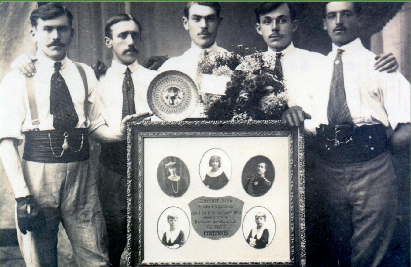 Kaatsclub “Albert I” speelde kampioen in 1918: “Gemeente Niel, Handbalprijskamp van 1 tot 8 september 1918 Voor de “Nielsche Handbalclub Albert I Eereprijs”