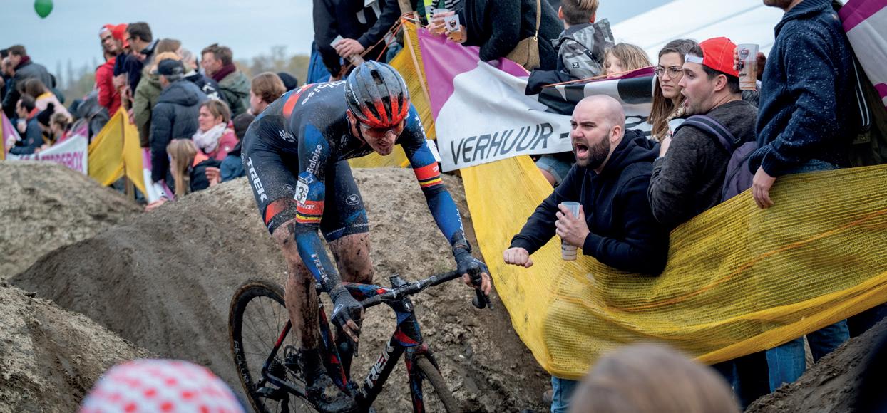 Renner Roland Liboton doet zijn ereronde na de cyclocross in 1980 met extra groot boeket in de Antwerpsestraat.