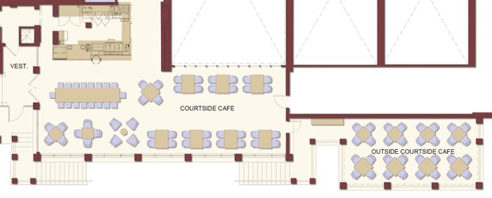 Multi-season dining on the Courtside Café deck: The new Courtside Café deck roof and new window system will allow us to offer seating throughout spring, summer, and fall, so you can enjoy the outdoors throughout the milder seasons.
