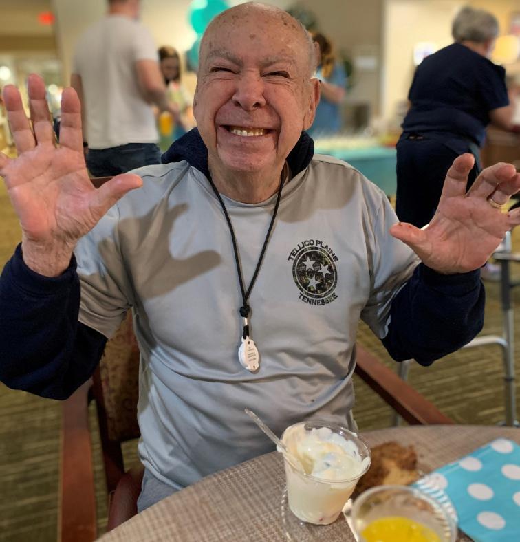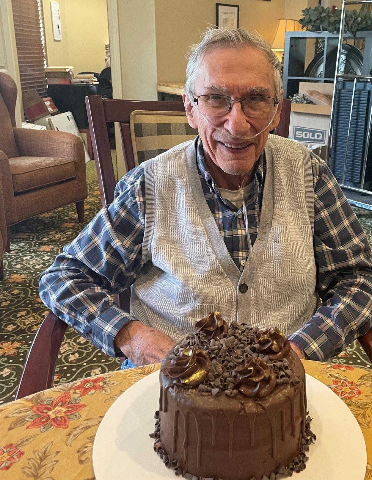 Jack Parr, a resident at Morning Pointe of Lenoir City Assisted Living, celebrated his birthday and his success in speech therapy – by digging into his amazing chocolate cake created by Food Services Director Alicia Allmon!