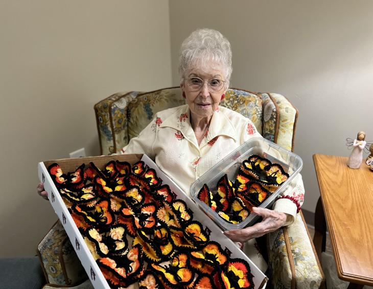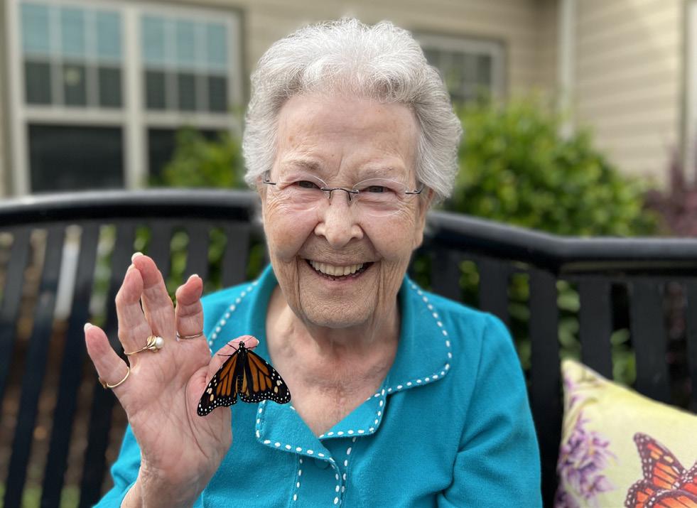 “It’s amazing to watch how they develop from a tiny egg to a caterpillar then to see how they transform their bodies and become a chrysalis and hang for two weeks to emerge as a beautiful butterfly,” said resident Dot Hilliard.
