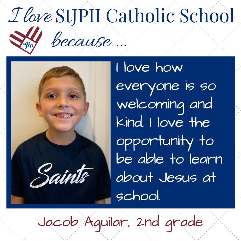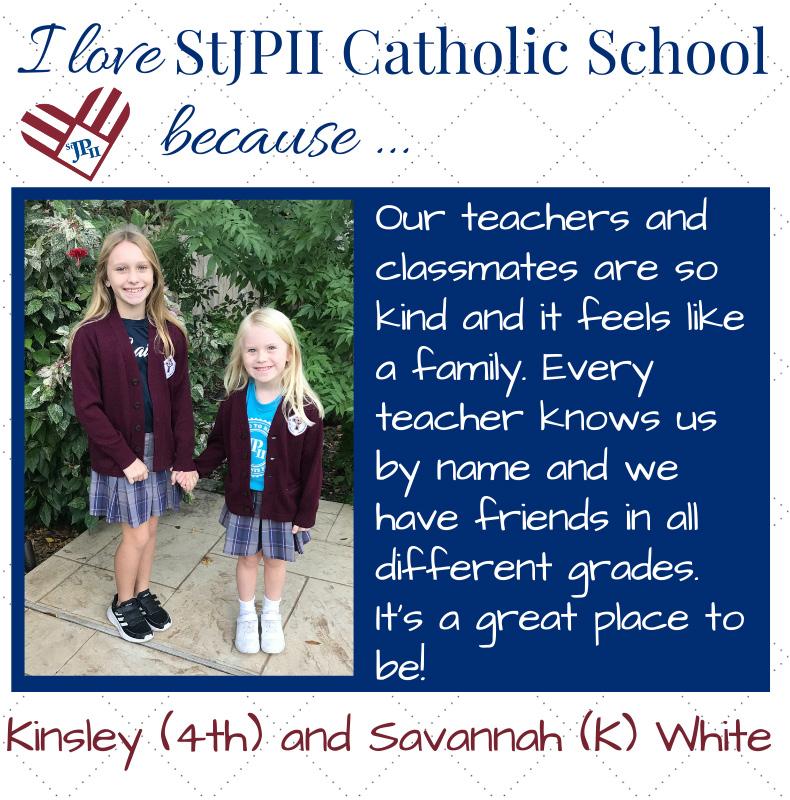 We remain committed to ongoing excellence in academics, athletics, and the arts listen to God’s will. The school has launched a new strategic plan which paves the to grow in excellence and to meet the various needs of each and every one of our of tradition and innovation. StJPII continues to be a leader in Catholic education Archdiocese as well as the first to receive recognition as a National Blue Ribbon school in all areas and earn an average of 20 academic scholarships to the local Catholic Just this last year, two of our young men were recognized as Ignatian Scholars at Stake testament to the formation our students receive at StJPII that prepares them for the and beyond.