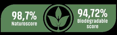 À droite : le biodégradable score apparu l’année dernière, vous donne la biodégradabilité du produit en 28 jours.