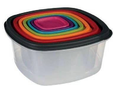 1 Beurrier : Avec couteau inclus, (dimensions : L. 15.5 x P. 10 x H. 7.1 cm). 1 Boite à fromage : Boite hermétique pour éviter les mauvaises odeurs dans le frigo, (dimensions : L. 28.7 x P. 19 x H. 10.7 cm). 1 Boite à baguette : Format idéal pour les baguettes, fait aussi planche à découper et ramasse miettes, (dimensions : L. 39 x P. 12 x H. 9.7 cm). 1 Boite à pain : Peut également servir de planche à découper et de ramasse miettes, (dimensions : L. 29 x P. 18 x H. 15.9 cm).