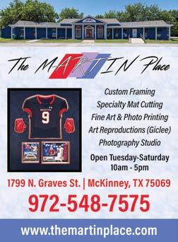 February 2023 Showroom - Test Rides - Sales - Service WWW.LOCO MOTION EBIKES.COM 5160 Collin McKinney Pkwy., Ste 500 - 214-856-4035 MENTION THIS AD FOR $20 OFF EBIKE TUNE UP WE ARE BOSCH CERTIFIED Shipping • Mailbox Rental • Banners • Notary • Printing TSA Precheck • Passport Renewals • Faxing 214-592-0855 6710 Virginia Pkwy., Suite 215 • McKinney, TX 75071 Beautiful Handcrafted & Site Finished Hardwoods Carpet • Tile & Stone • Waterproof Flooring New Hardwood Starting at $3.98/sq ft! Free In-Home Estimates 214-733-0904 2411 Virginia Pkwy., Ste. 4 CALL US TODAY! 940-489-5500 rainbowrestores.com/denton Serving all of Collin & Denton Counties Restoration Begins Now. CALL FOR OUR HOLIDAY CARPET CLEANING SPECIAL!