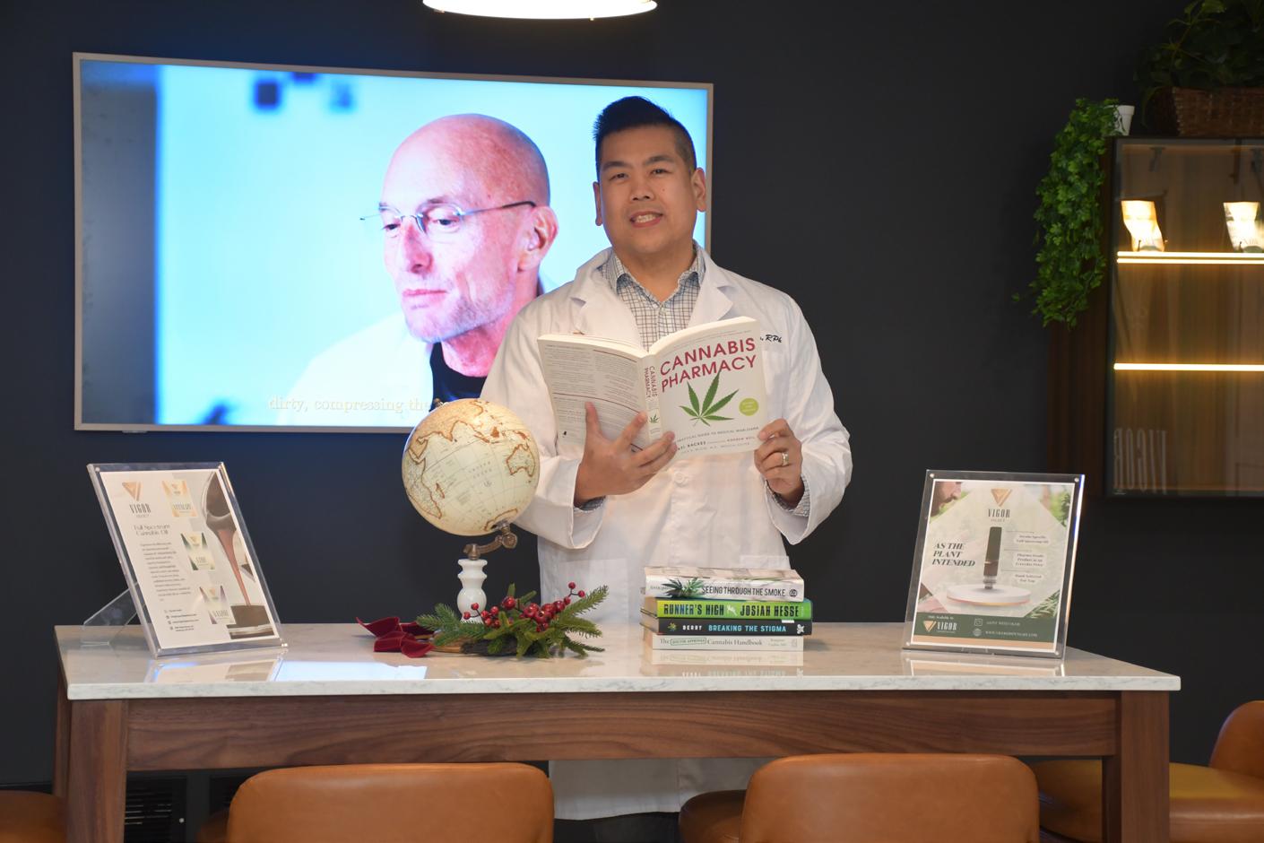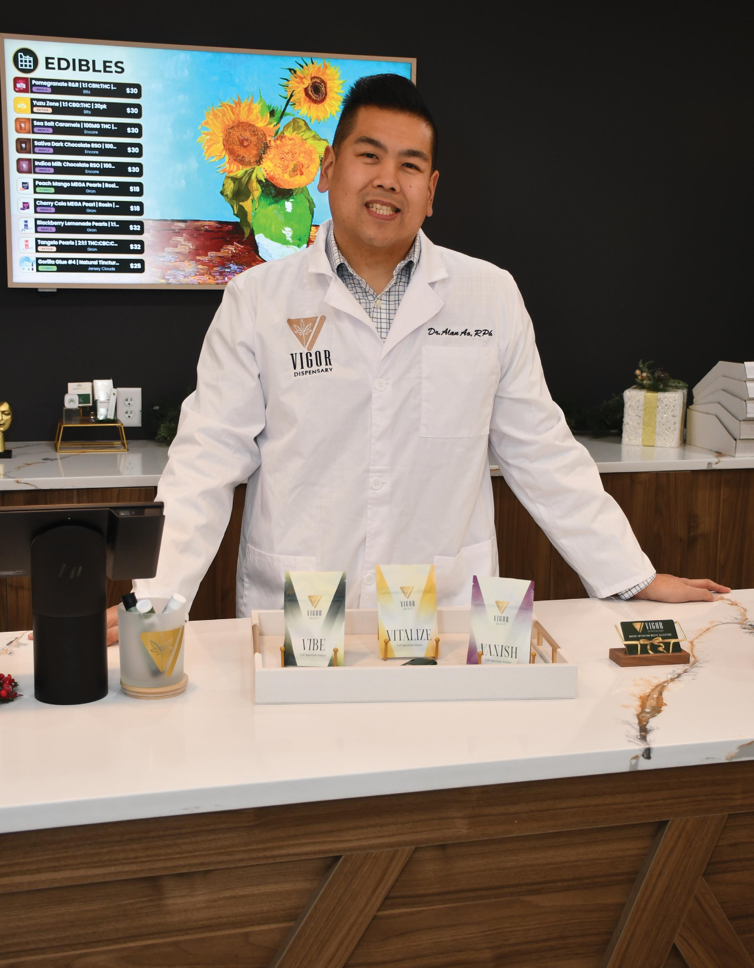 When you first walk into Vigor Dispensary, you might think of it as a typical cannabis dispensary that has found its home in Matawan. They sell flower, prerolls, concentrates, tinctures, edibles, and their unique and signature vape. But when you investigate the store further, you’ll notice a room designed specifically for comfort, a place where those with chronic, painful conditions can get educated on the best course for their treatment utilizing cannabis from a professional pharmacist, Vigor’s founder, Dr. Alan Ao. Ao discusses how he took his career in pharmacy into a path of helping treat the community in a different way, and what Vigor has to offer for Monmouth County residents and businesses.