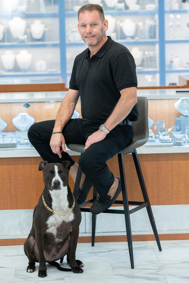 past March, which featured an exotic car show, a cigar roller, and food provided by MJ’s and Livotis. “We host events where we can give back to the community,” Wolf says. “It’s not just about purchasing jewelry but connecting and making friends.” Coming up, they’re planning on hosting a car show, as well as doing an Adopt a Pet event, which is something near and dear to Wolf’s own heart, as he adopted his dog, Scotch, from the Humane Society (Scotch was present during the entire interview, acting primarily as Wolf Fine’s adorable mascot, aside from being Wolf’s best friend).