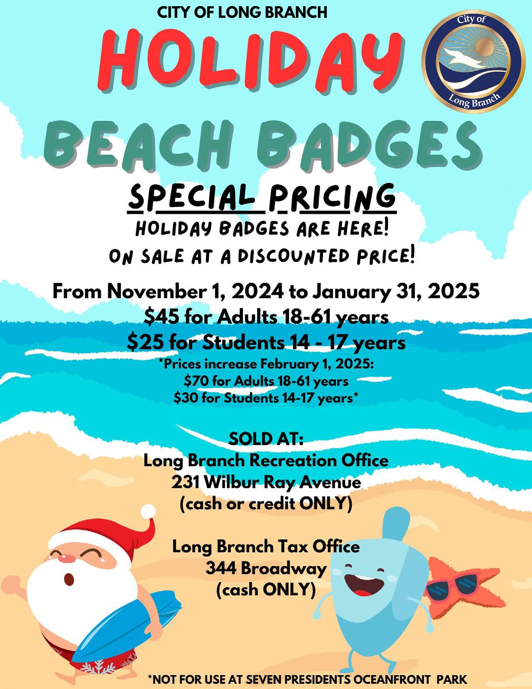 Kick off the holiday season Sunday, December 1, from 4-6 p.m. at Pier Village. The Long Branch Tree lighting will be celebrated with the Long Branch High School Marching Mand and Dance Team, Tim McLoone and the Shirleys, and Santa Claus himself.