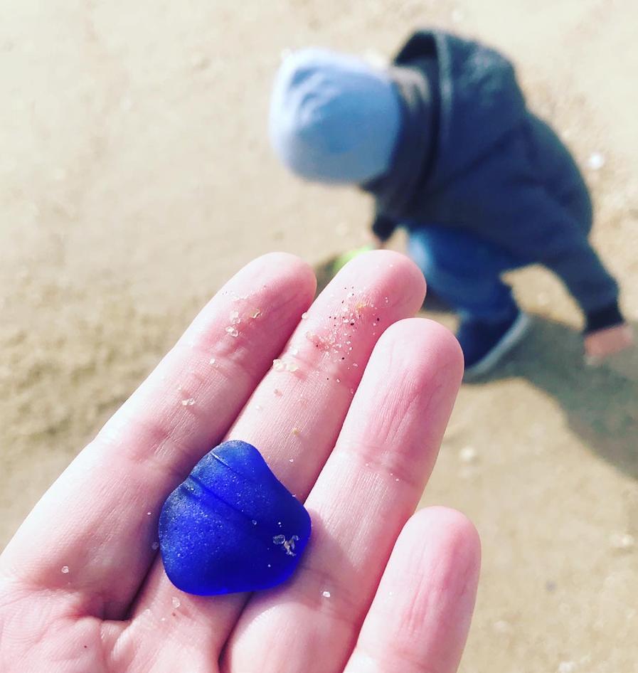 Ashley: So many! I could never list them all. I found a deep red piece of sea glass on my birthday a few years ago on the beach in Avonby-the-Sea. It was perfectly frosted and just wonderful. I will never forget it or that day. I also have found a few pieces of ‘pirate glass’ - meaning the glass looks completely black laying on the sand - and changes color when held to the sun. ‘Pirate glass’ is usually quite old. I found one piece of yellow and was quite thrilled, and also one piece of pink,