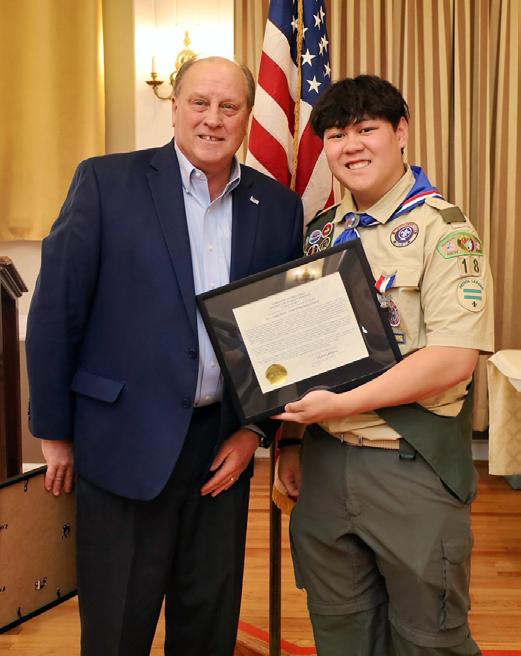 At the beginning of June, local Boy Scout Troop 18 held the Eagle Court of Honor Ceremony for Gavin Caulfield and Logal Javier. Gavin Caulfield’s Eagle Scout community service project involved beautifying the Applegate School by adding a walking course to the school’s outdoor community classroom. Logan Javier’s project renovated the well house and restored the gazebo at the historic Oakley Farm.