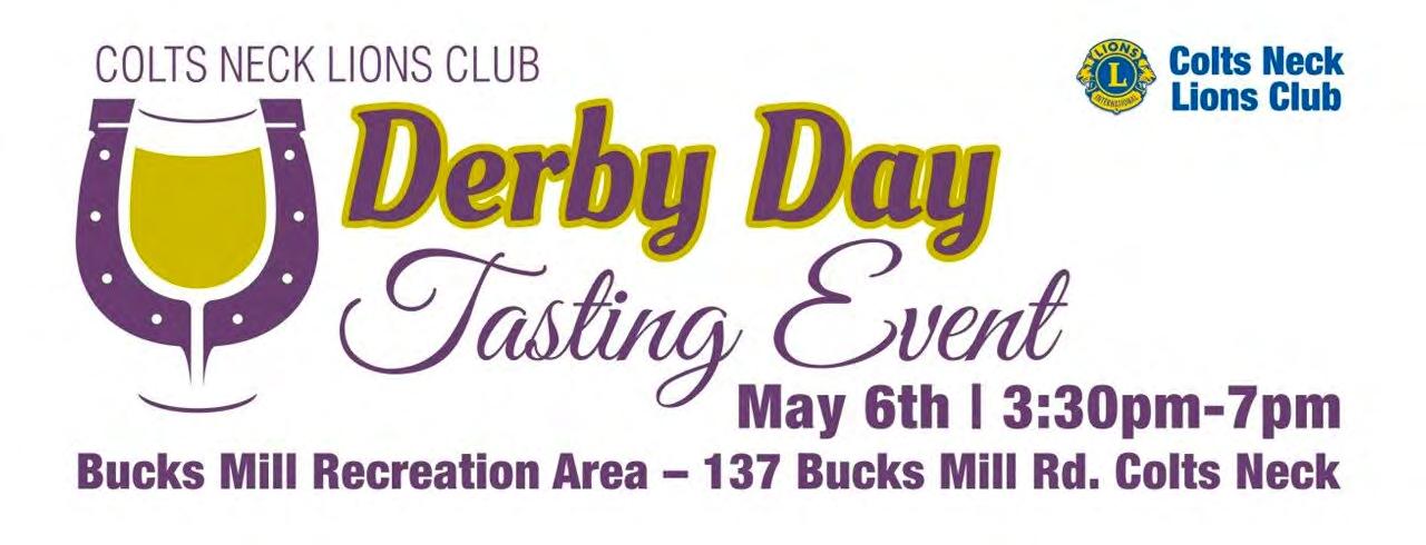 The Colts Neck Lions Club is hosting an annual Derby Day Tasting Event on Saturday May 6th, 3:30-7pm. There will be Beer, B ourbon and Wine Tasting, with over 40 varieties of wine! This year, the Lions Club will sprinkle in some Tequila to celebrate Cinco de Mayo. Two food trucks w ill be available: Gregor's Garage BBQ and Sweetpepper. There will be music and games, including a Derby Hat contest, a silent auction and prizes. Of course, the showing of the Kentucky Derby as it happens! The expectation is around 250 people to attend this exciting event.