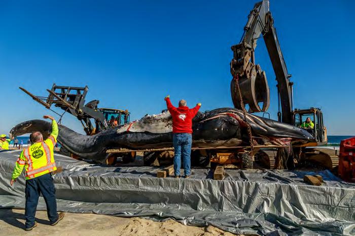 According to NOAA Greater Atlantic Regional Fisheries Office, the humpback whale was reported to the MMSC on Monday, February 13. Necropsy teams from M MSC and Atlantic Marine Conservation Society were on scene to gather informa-