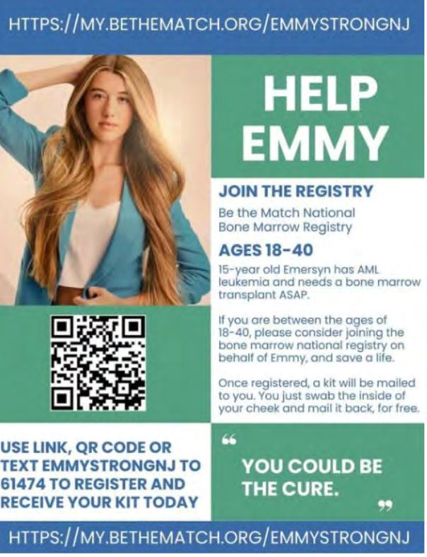 Emmy Freund, a resident of Fair Haven, was recently diagnosed with leukemia and is in need of a bone marrow transplant. Spread awareness and sign up to be a match today to receive a registration kit! If you are between the ages of 18-40, you can help save someone’s life.