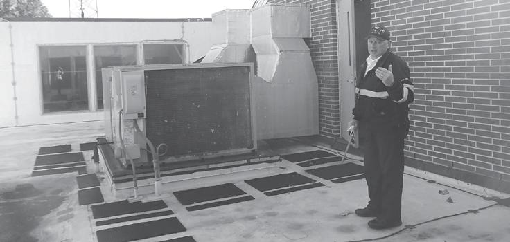 Former Hudson Fire Chief Bryan Johannes shows the HVAC units in the fire headquarters.