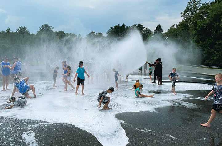 their hoses and visited the Recreation Department’s full day program on July 16 to help the kids cool down amidst the heat wave. Recreation Director Allie Lane thanked the fire department for “giving us the best water day ever!” (Photo/Courtesy Allie Lane)