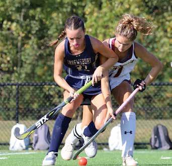 Top right: Shrewsbury’s Rachel Lemay tries to get the ball away from Algonquin’s Lindsey Brown. Right: Shrewsbury’s Valerie Ornelas Cottier fends off an Algonquin defender. (Photos/Evan Walsh)