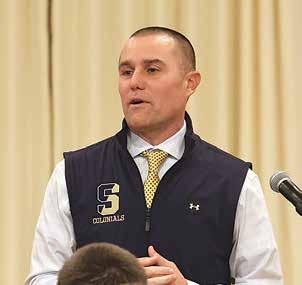 That’s how Nick Todisco, event organizer and past grand-knight for the Shrewsbury Knights of Columbus, opened his address to the Shrewsbury High School football team on Nov. 25. For 40 years, the Knights have treated the Colonials to a pre-Thanksgiving banquet that includes guest speakers, a year-in-review highlight reel, and, of course, plenty of food.