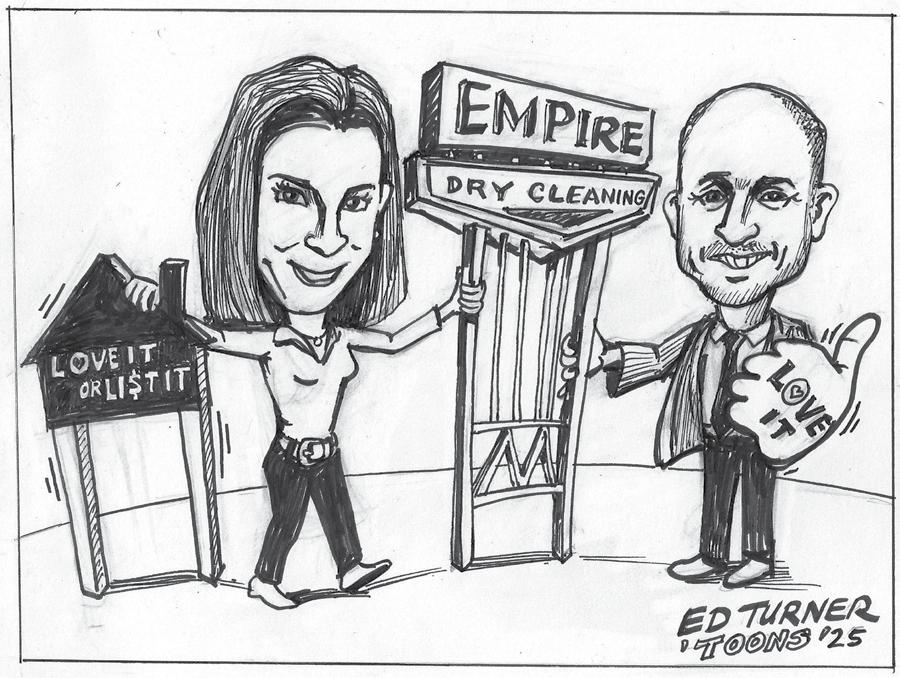 The Empire Dry Cleaning lot (15 Maple Avenue) is now town property after a yearslong foreclosure process. At a recent meeting, the Shrewsbury Select Board had to decide whether to “Love” the property – keeping it as townowned land – or “List” the property on the market. In the end, the board decided to retain the land. The town will ask for public feedback on potential future uses. The situation was similar to HGTV’s “Love It or List It,” where homeowners are forced to make the same decision between selling and fixing a property. In this cartoon, HGTV’s Hilary Farr, part of the “Love It or List It” franchise, stands beside Town Manager Kevin Mizikar.