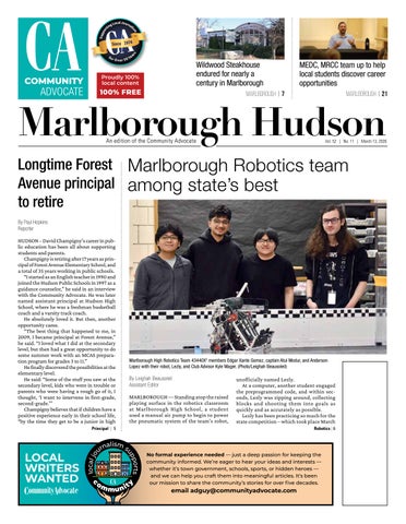 The Community Advocate’s Policy on Letters to the Editor Letters must be signed with a name, address and telephone number for verification (only name and town will be printed). Letters should be sent to news@communityadvocate.com or mailed to Managing Editor c/o Community Advocate, 32 South St. Westborough MA 01581. The editor reserves the right to reject letters on the basis of length, libelous content, suitability and space constraints. Multiple letters from the same person will not be accepted within a 30-day period. “Form letter” submissions, in which the content of one letter is essentially duplicated, will not be accepted. Letters should be 350 words or less. Deadline is 12 p.m. Friday the week before publication. Opinions expressed in the letters to the editor do not necessarily represent the opinion of the Community Advocate management or its advertisers.