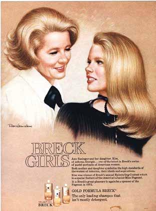Ralph Williams succeeded Sheldon after his death and continued the company’s tradition of illustrating the models as sweet, wholesome and elegant, thus setting a standard for freshly shampooed females. Breck Girls symbolized “the kind of girl a mother would like her daughter to be,” featured in a gold frame with the words “Breck — Beautiful Hair” as the only words in the ad. Breck also was a sponsor of the America’s Junior Miss Pageant.