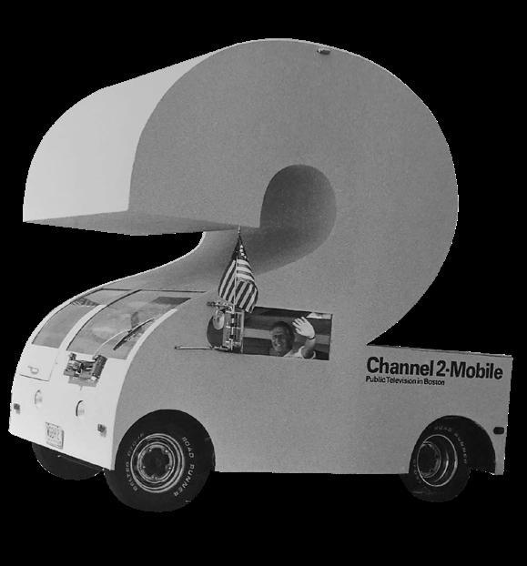 “Ah, yes. The 2-Mobile was driven from the Cape to the station as a fund-raising/publicity gimmick. Chris Pullman, Design Manager, had a hand in it, as did the indomitable Sylvia Davis, and many others. It was fun and stunning to see but wobbled in the slightest crosswind and was risky to drive. We did a fund-raising shot of it crossing the reservoir between Waltham and Lincoln — a fun adventure. We did whacky stuff back then to call attention to our need for contributions. Viewers would walk up to the 2-Mobile and give the driver a dollar or two and cheer it along. Wild.”