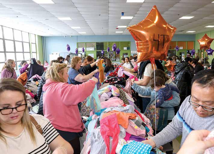 Individuals sort through children’s clothing for sale at the annual HopSwap, a community-wide tag sale held March 15 at Hopkinton Middle School to benefit the Hopkinton Parent Teacher Organization and HopMoms.