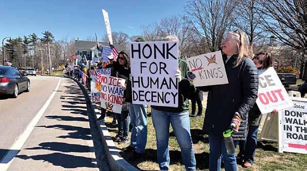 Hopkinton organizers hosted a protest March 28 at the Town Common that joined others across the country for the latest No Kings Day of Action. The protest was one of 3,300 events worldwide drawing an estimated 8 million people, according to No Kings organizers. Demonstrators stood along Main Street with signs, flags and costumes. The protest aimed to address what the No Kings organization describes as increased authoritarianism from President Donald Trump. Some individuals at the protest estimated the crowd to be smaller than the rally held in October, which was around 500 people. A volunteer said the turnout might have been impacted by Boston’s No Kings event, which drew an estimated 180,000 people to the Boston Common the same day.