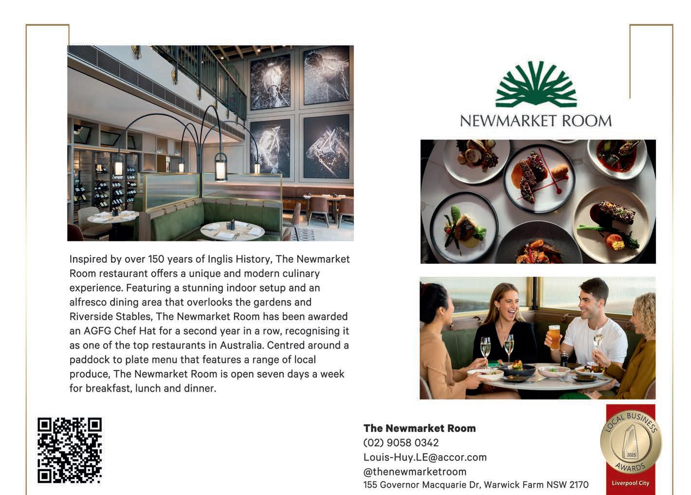 Celebrating racing history and the thoroughbred industry, The William Inglis Hotel is a 5 star boutique property overlooking Warwick Farm Racecourse. The property is part of the MGallery Hotel Collection, a series of luxury hotels that feature memorable designs and stories to tell. Featuring over 23 unique event spaces, The William Inglis is the ideal location to host weddings, corporate meetings, gala dinners and special events.