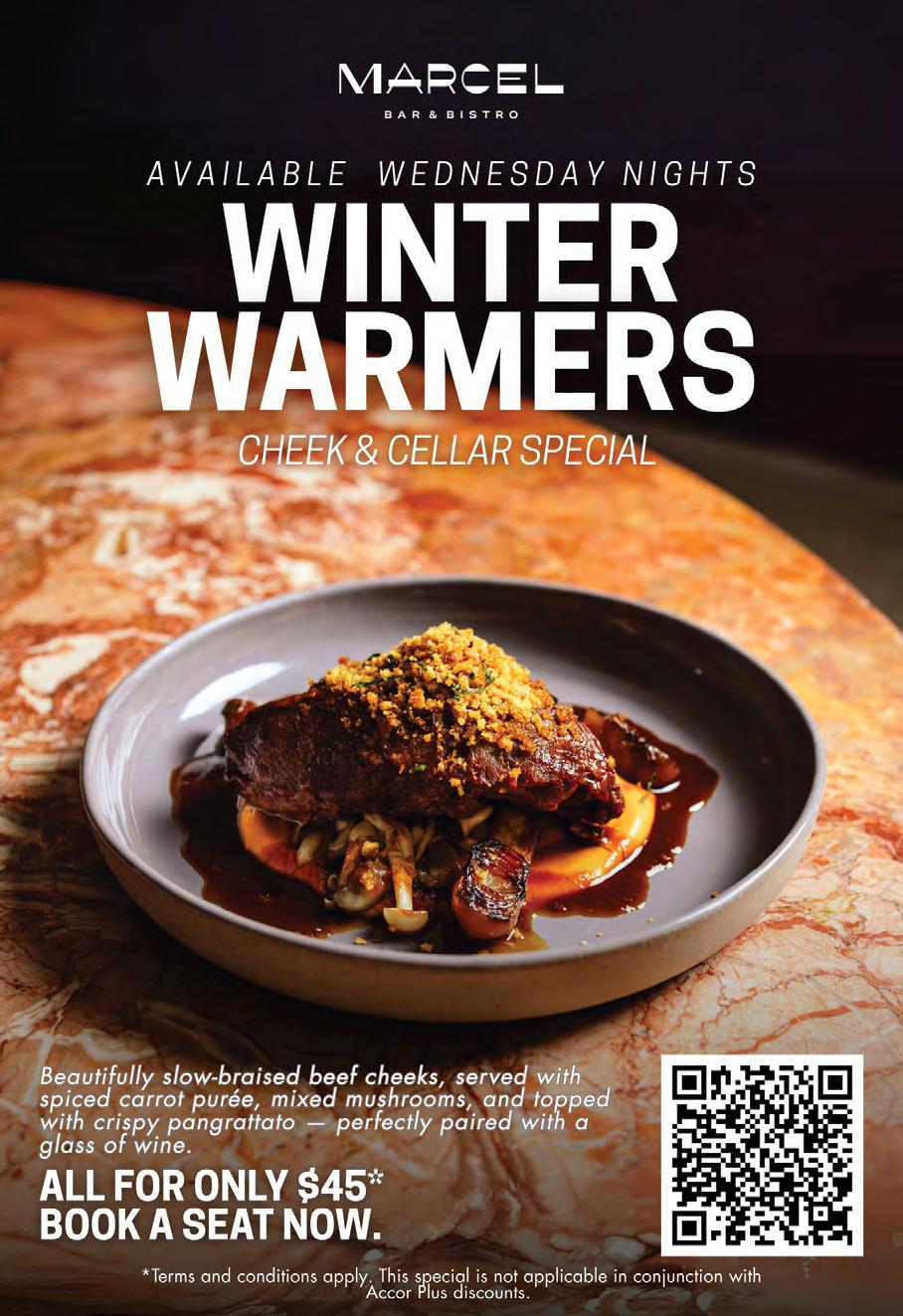 Every dish from the world-class kitchen is grounded in storytelling, technique, and regional pride. Signature dishes include premium Australian steaks such as a MB6+ Wagyu striploin grilled over flame, and a caramelised miso Patagonian toothfish marinated for three days - a standout