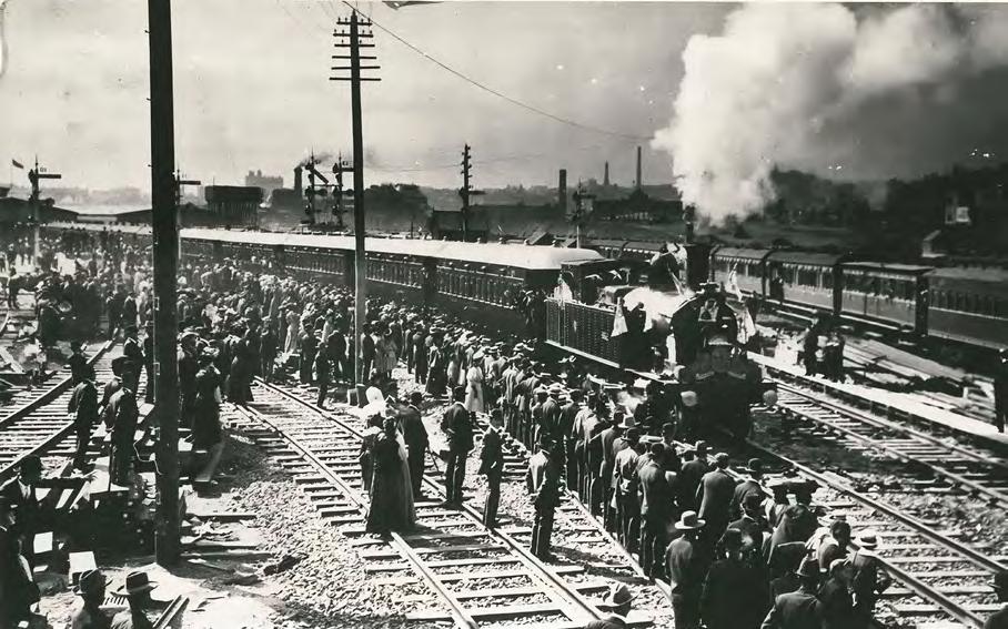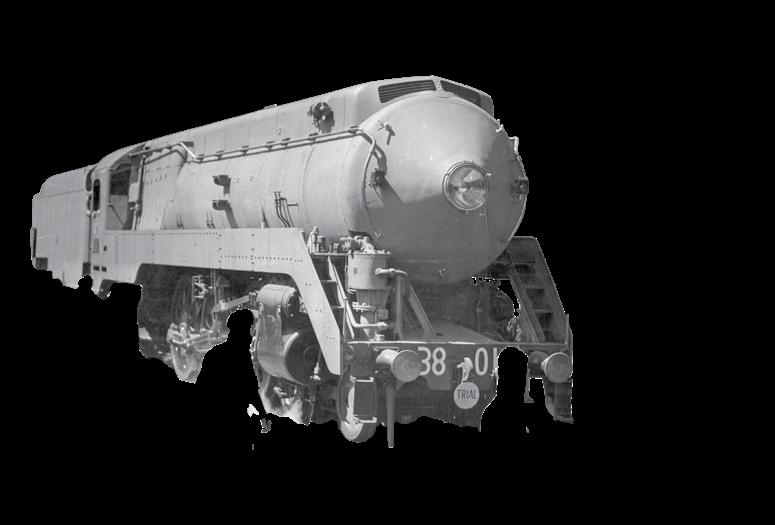 Photo shows workers at Clyde Engineering watch as legendary steam locomotive 3801 departs for a trial run, 1943, (ARHS Archives). See page 19 for more historical images.