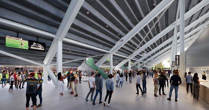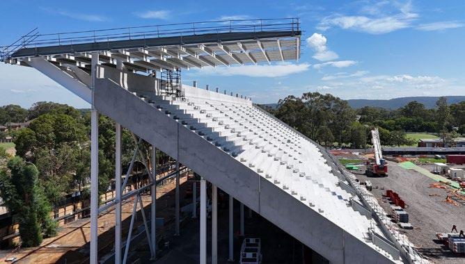game-day experience. Once finished, more than half the seats in the eastern grandstand will be covered, nearly doubling the number of covered seats compared to the old grandstand. Two Western Sydney businesses are playing a central role in the roof installation.