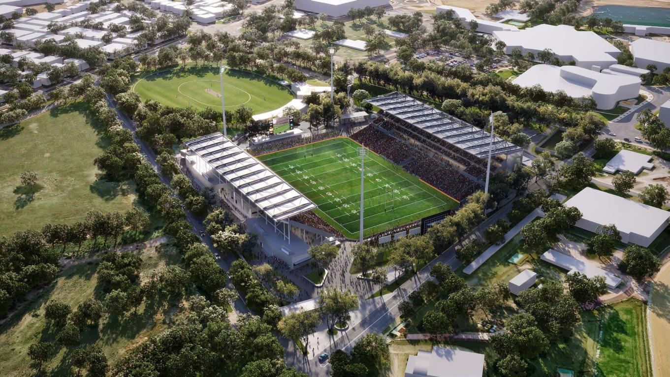 THE NSW Government is powering ahead with the redevelopment of Penrith Stadium, reaching a major milestone with the installation of the first section of the eastern grandstand roof. The modern roof design will significantly enhance the