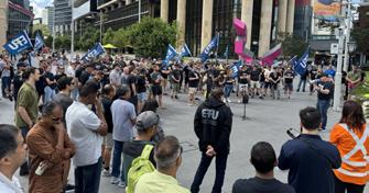 They staged the strike at Parramatta Square talking on microphone expressing frustration over wages that have not kept pace with skyrocketing living costs since the pandemic.