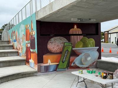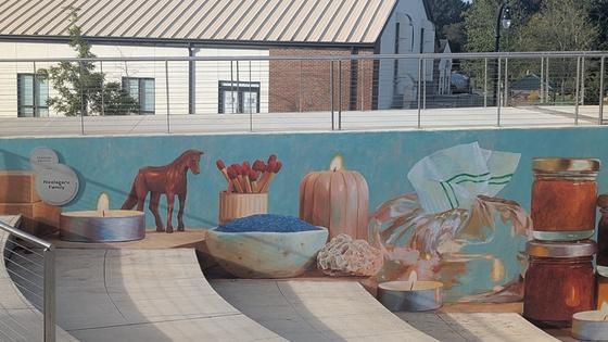 $5,000 toward adding a new mural wall, to complement an existing mural painted in 2025 by professional muralist Pat Perry. The current mural wraps three sides of the new Town Center on Main bridge and has elements from various books. Funds to add to the longer side of the wall would complete this area. Local artists, or possibly art students, would be involved in the design and painting.