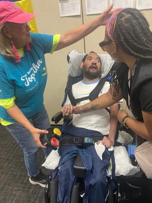 Step Talkers enable the members of our Better Together program, most of whom are nonverbal, to use a voice output device with recorded messages that allow them to communicate their choices by pressing a button, thereby participating in activities