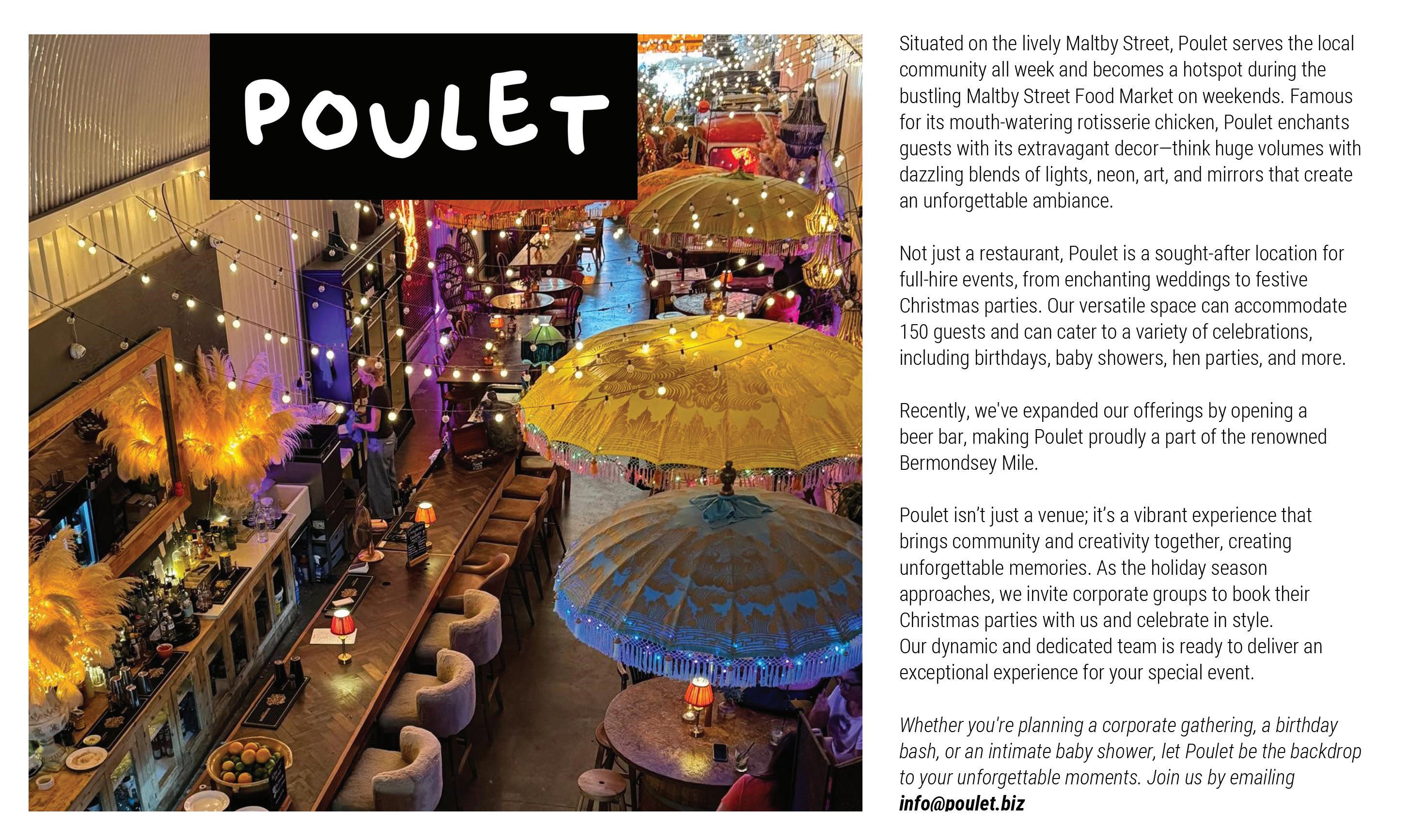 For more details and events inquiries please contact us at info@poulet.biz or 07539142389