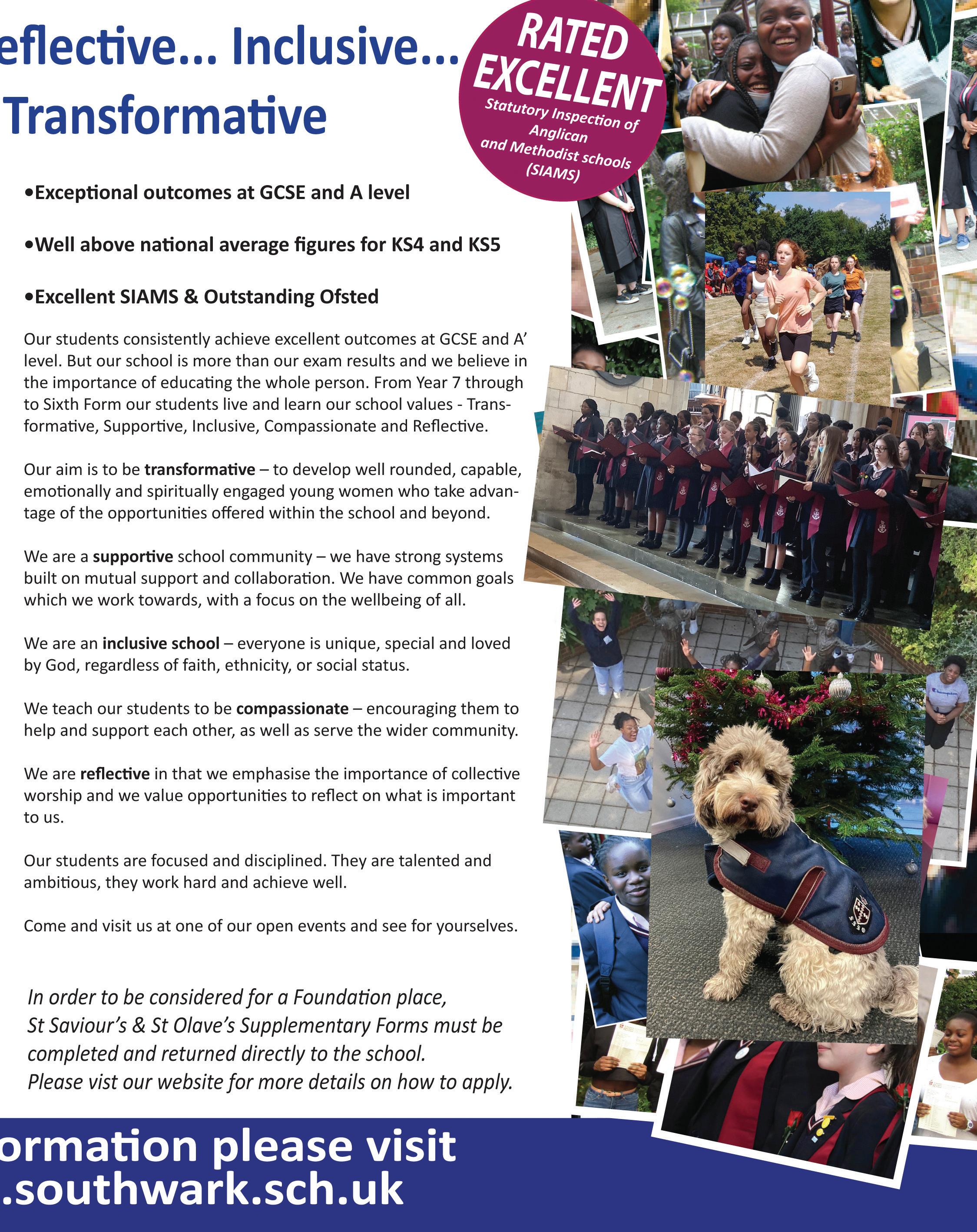 If your child is in Year 6 and currently attending one of Southwark’s or Lambeth’s primary schools, you will receive further information from Continues overleaf