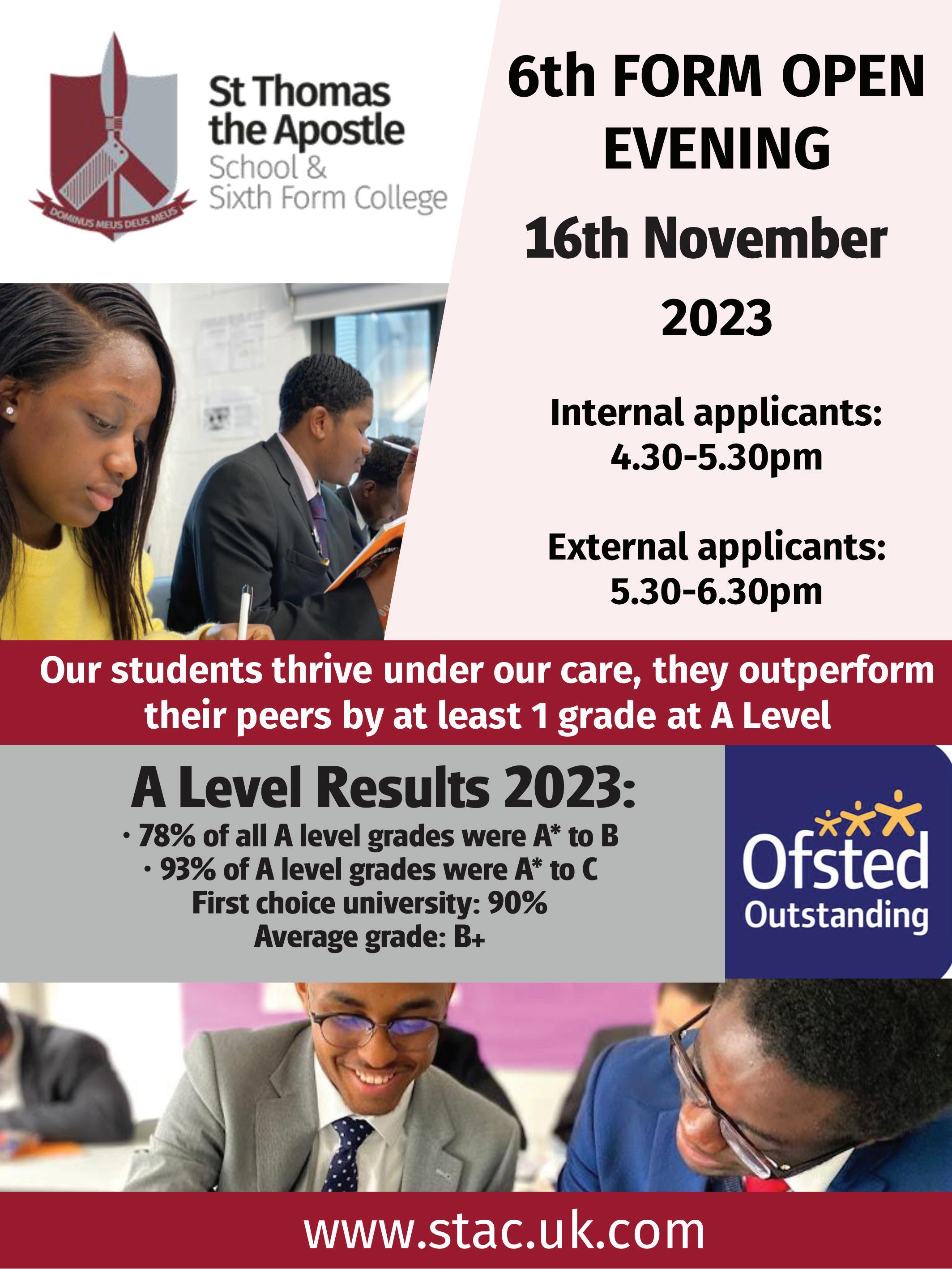 Sixth Form Open Day will take place on Thursday 09 November 4.30pm - 7.00pm