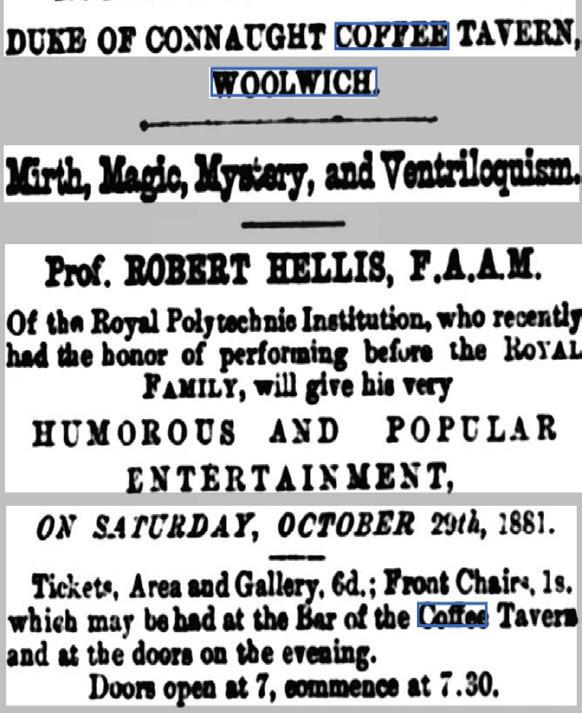 It didn’t last of course. In 1892 it the hall was converted into a music hall which lasted until 1902. In 1903 the Duke of Connaught Coffee Tavern was advertised ‘with new proprietorship’ with ‘first-class coffee’ and ‘clean beds’. They advertised dinners and teas and in particular breakfast with kippers and toast and much else. There are reports of draughts matches and dancing school displays. Hopefully they had lost any reputation for dirty beds and lazy, disreputable housemaids.