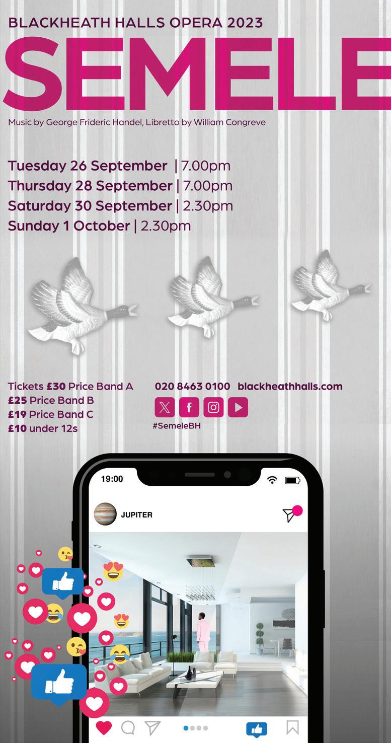 Blackheath Halls is rolling out its annual Community Opera and this year, it’s William Congreve and George Frederic Handel’s Semele that’s being revived. Not as a straight up period piece, though. Instead the team have decided to explore the opera’s theme of aspiring for a more glamorous life through our current times’ fixation with seeking approval on social media, writes Holly