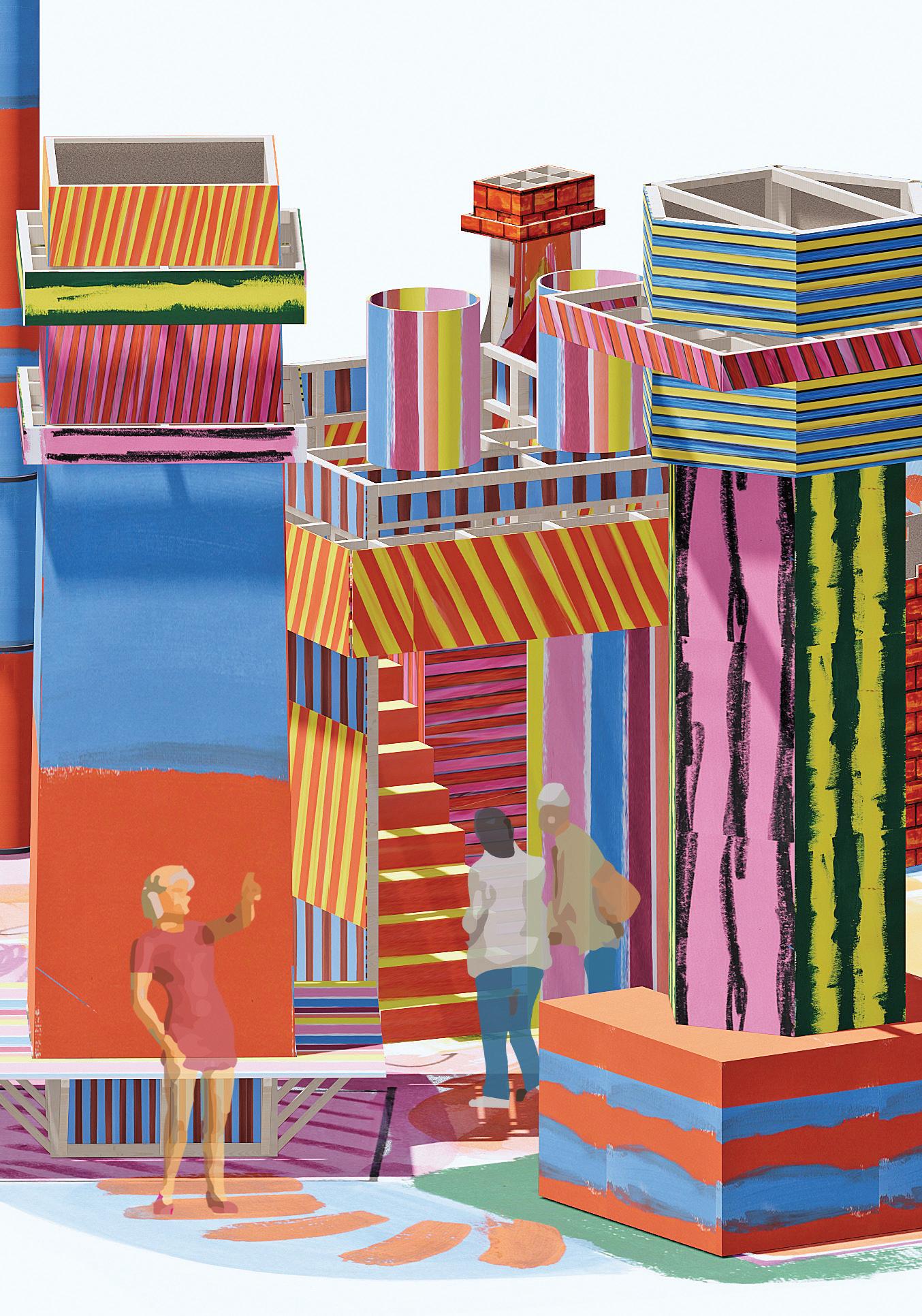 Continuing its 10th-anniversary celebrations, NOW Gallery has announced its Design Commission of 2024 – “Up in Smoke” – by the designer-architect duo John Booth and Mat Barnes from CAN. The exhibition is free and opens on 21 June. Up In Smoke sees the gallery space transformed into a vibrant, colourful and interactive installation that tells the story of Greenwich Peninsula through its iconic chimneys, evoking the memories of the area’s lively past, and its transformation from a historic former marshland to the cultural hub it is today.
