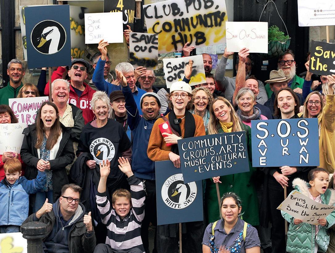 “Our plan is to restore the pub and live music venue, but also do more by investing any profits to enable young people access to the arts and provide a space for our wider community. The White Swan should be where you walk up to the bar as a stranger but walk out as a friend.”