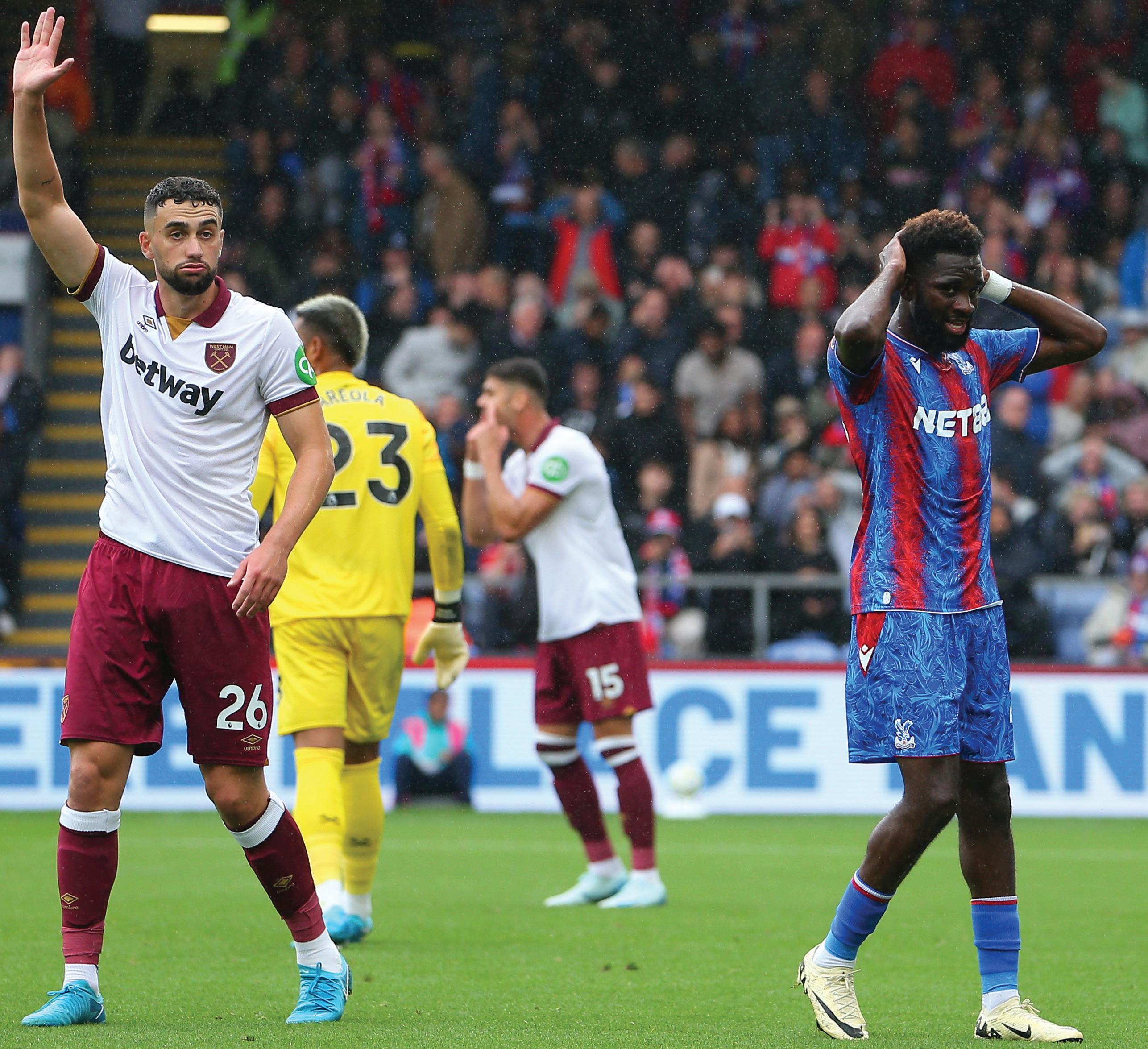 CrystaL PaLaCe have suffered an early injury blow in the season after summer signing Chadi riad lasted only ten minutes in the eagles’ 4-0 win over norwich City in their eFL Cup second round tie at selhurst Park, writes John Kelly... Morocco international Riad started alongside Marc Guehi and Nathaniel Clyne in a back three but damaged his knee trying to block Gabriel Forsyth’s attempt and was replaced by Chris Richards.