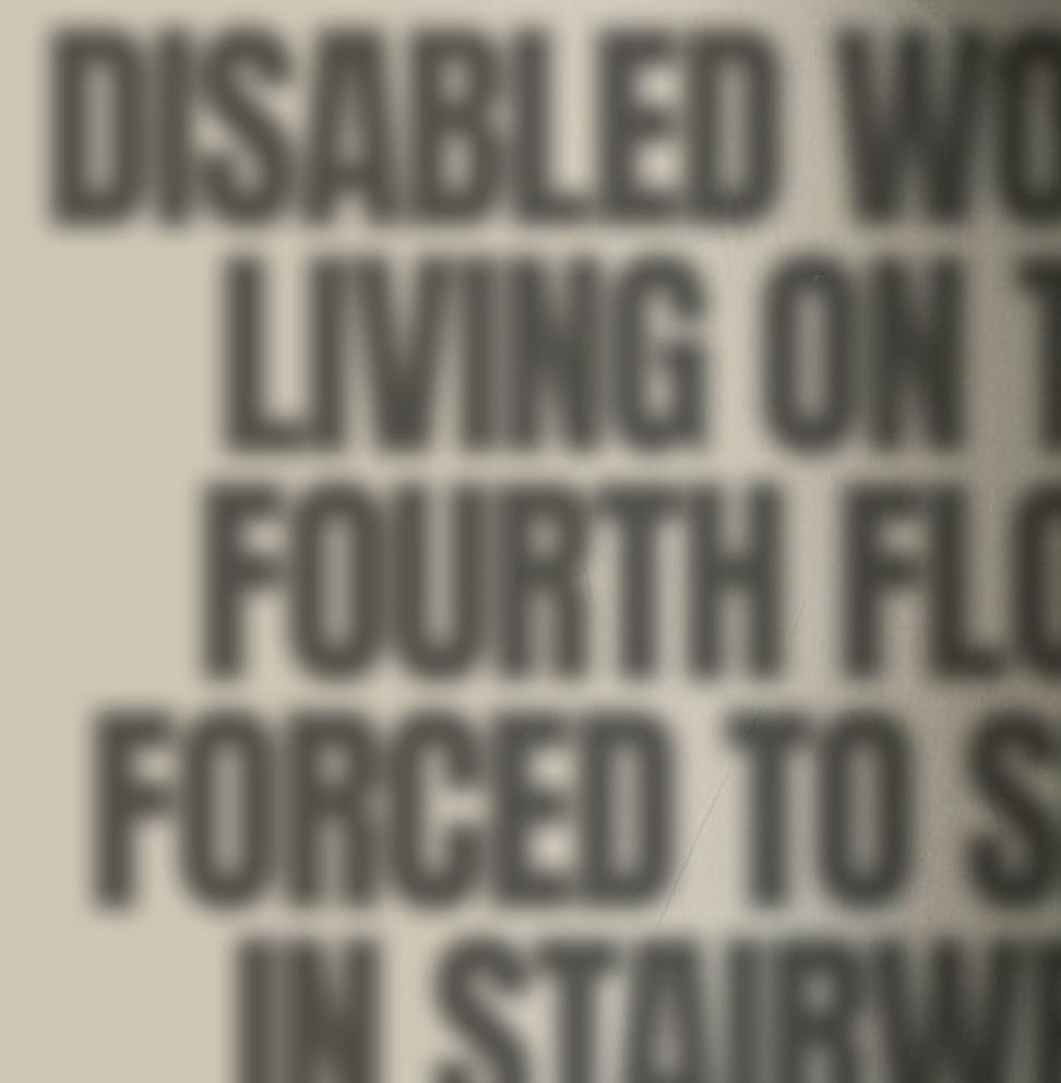a DisaBLeD woman in rotherhithe says when the lift in her block breaks, she is often forced to sleep under the stairwell downstairs next to the bins where it stinks of urine.