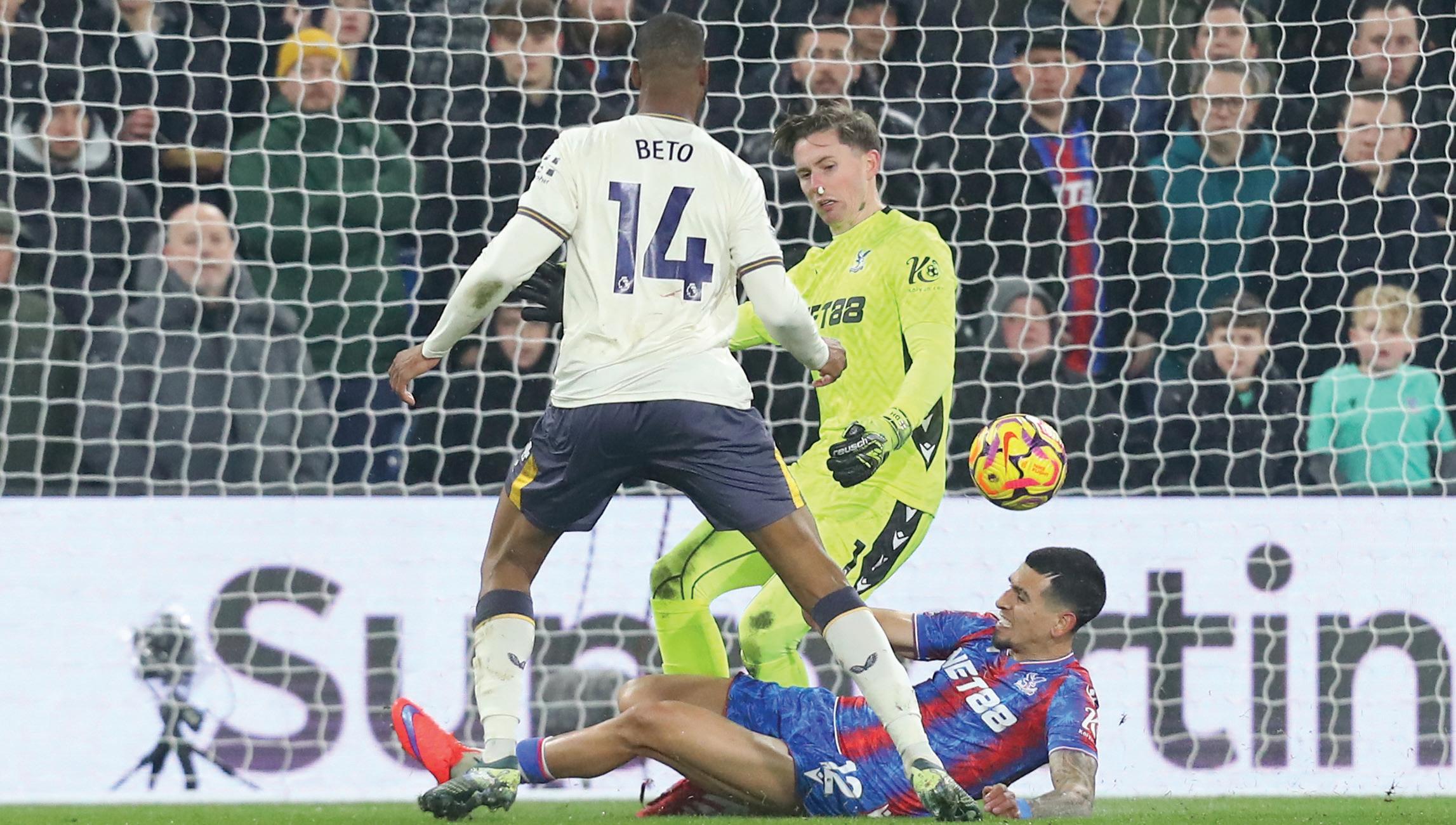 Beto gives Everton the lead despite the best efforts of Daniel Munoz and goalkeeper Dean Henderson
