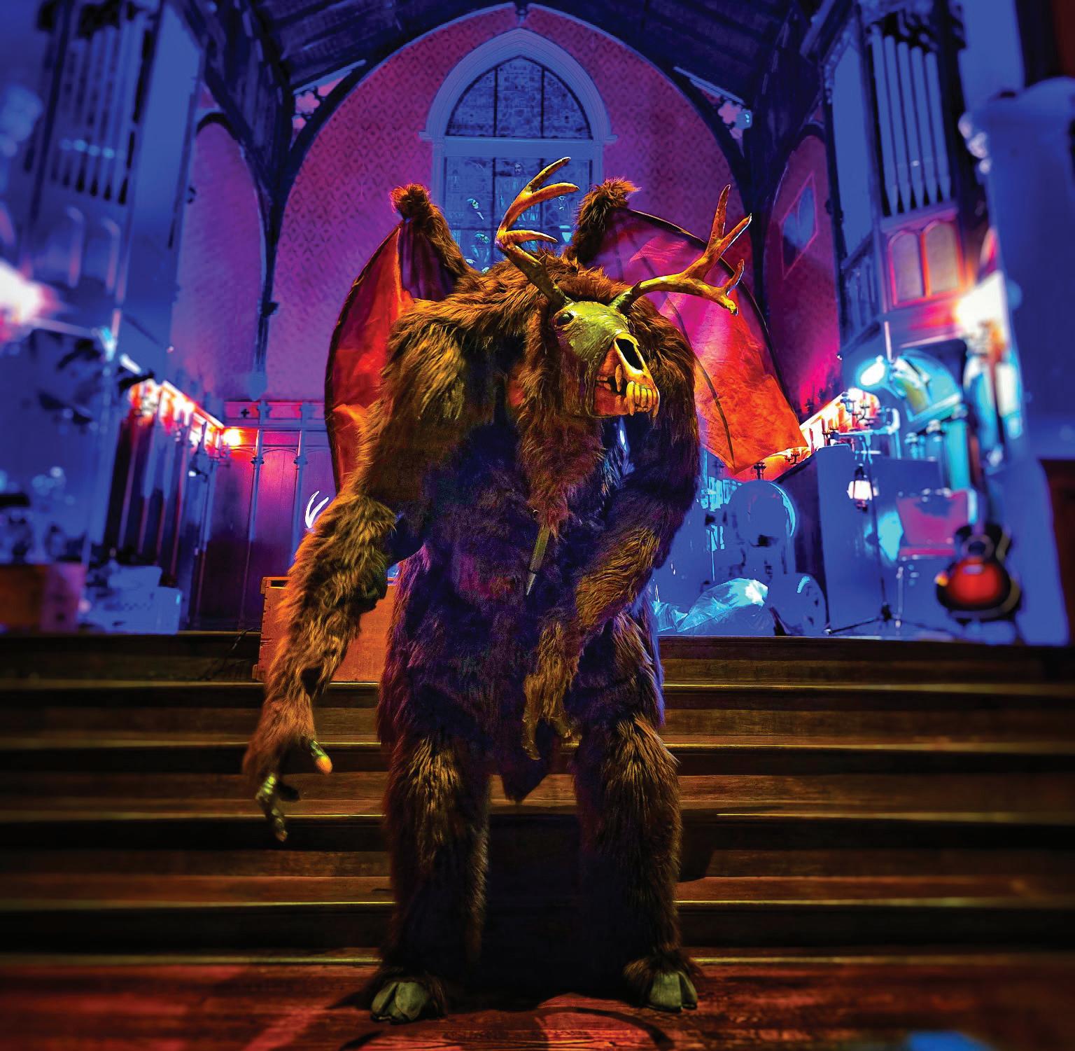 “I’d be strapped into this thing for more than an hour each show, so I knew it had to be as comfortable and lightweight as possible. It’s made from Styrofoam, carbon fiber, and lots of fur, with straps holding all the joints together,” he explains, adding that bungee cords secure the mostly 3D printed head onto the shoulders.