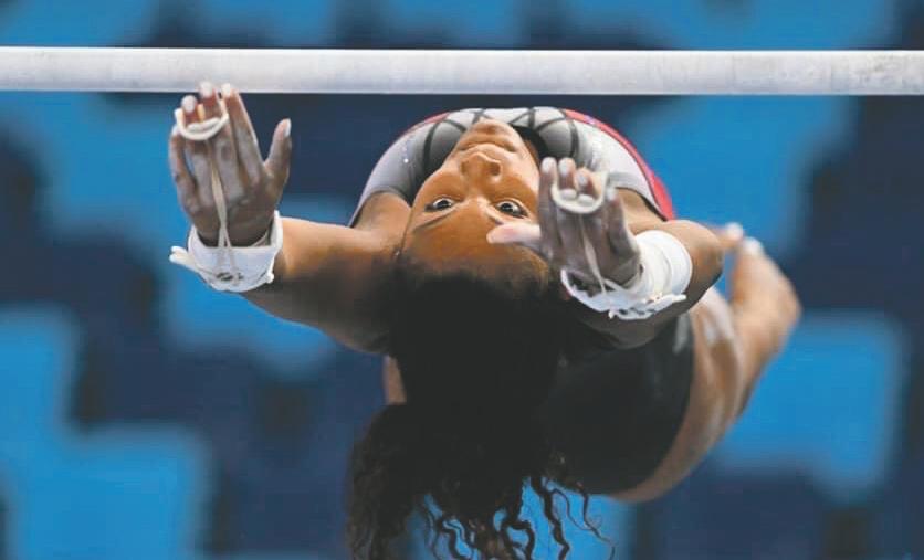 Olympic hopeful Annalise Newman-Achee focuses on the uneven bars at the July 2022 Pan American Gymnastics Championships, held in Rio De Janeiro. For the full story, turn to page 22.