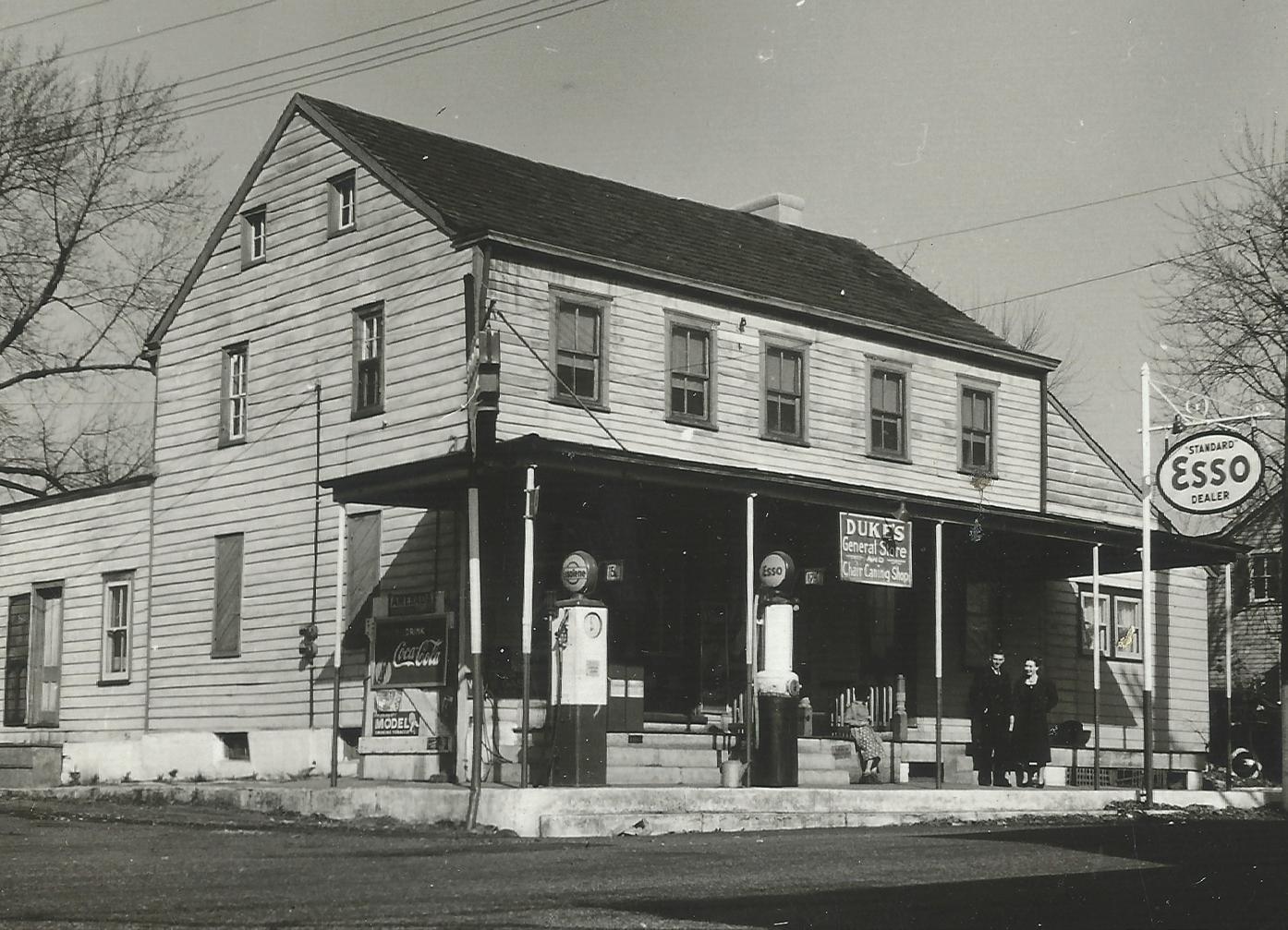 The store’s address is 1720-1722 Old Trenton Road. It features two ca. 1960s gas pumps out front. At the time of this writing (2025), the building houses the “Village Pantry” deli and “Greenhouse Graphics” graphic arts company.