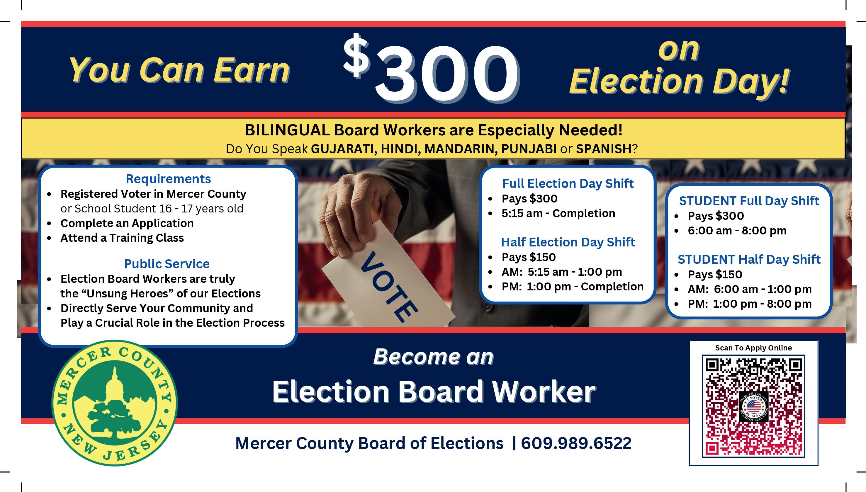 If you are a qualified and registered voter of Mercer County, New Jersey who wants to vote by mail in the General Election to be held on November 4, 2025, the following applies: